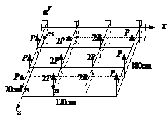 算例2.2如圖2.1所示的九盒段結構,由64個桿元件、42個板元件構成,材料為鋁合金,原始數據取自文獻[11]。已知外載荷與各個單元的強度均為正態隨機變量,且外載荷的均值和變異系數分別為,第個單元強度的均值和變異系數分別為由失效模式的枚舉方法可求得結構體系的一個主要失效模式的極限狀態函數為23和表24分別給出可靠性試驗靈敏度計算結果的對照和置信度為0.95的置信區間的對照。