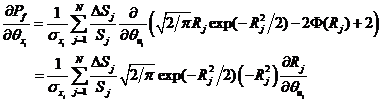 在5.1節(jié)中已經(jīng)給出了原坐標空間轉(zhuǎn)換成標準正態(tài)坐標空間的失效概率的計算公式,因此可靠性試驗靈敏度的求解方法可由復合函數(shù)求導法則寫成下面的形式。
